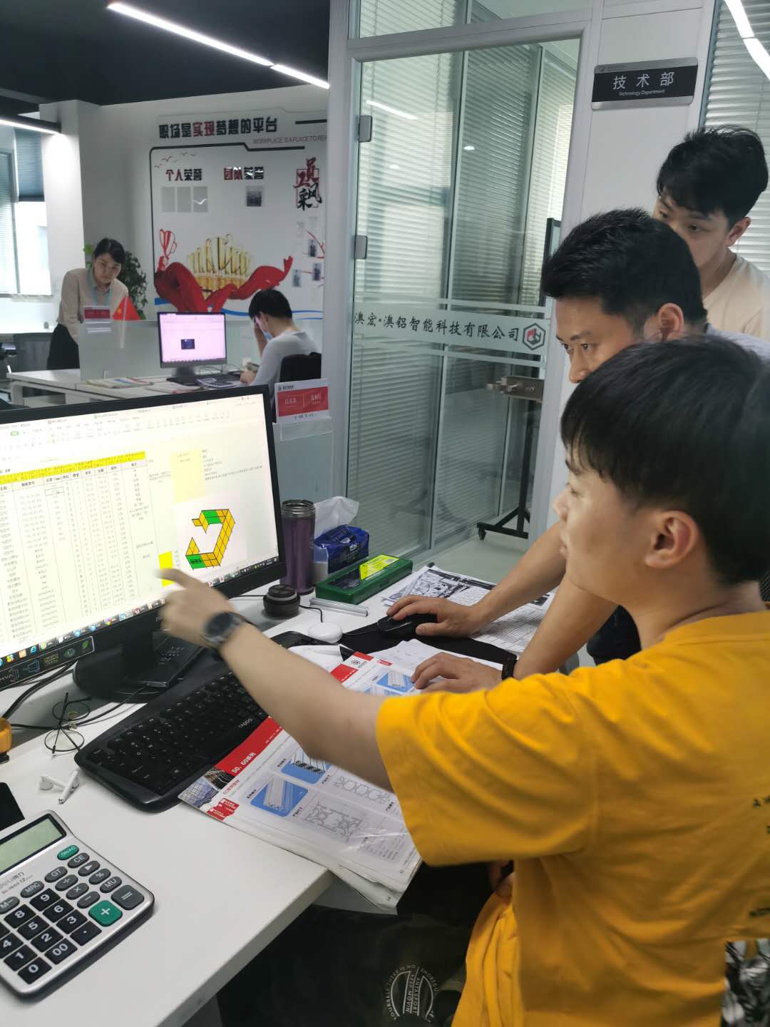 當(dāng)時通完電話,已經(jīng)是下午4點多鐘了,因為時間緊急,我們在安排寄歐標(biāo)4040鋁型材樣品時間上可能來不及了,張總當(dāng)晚就開車在晚上7點多到我們澳宏昆山工廠,因為歐標(biāo)4040鋁型材是出口產(chǎn)品,品質(zhì)要求很高,張總現(xiàn)場我們測了鋁材的厚度,表面處理,及硬度都做了抽查,經(jīng)過確認(rèn)后,張總現(xiàn)場就下